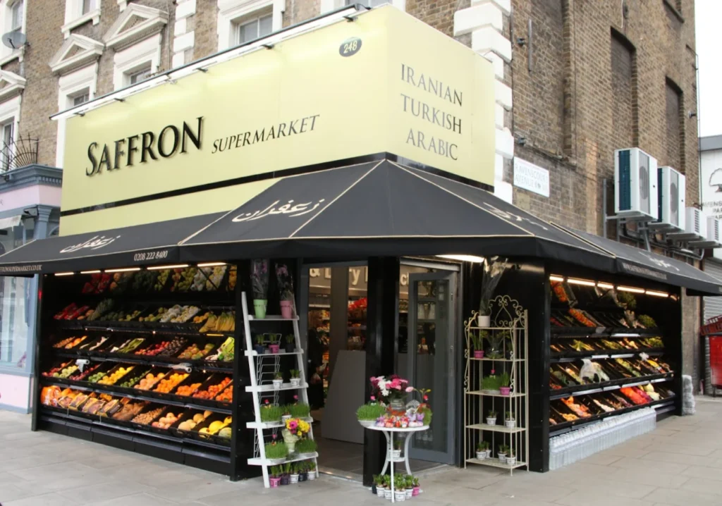 قفسههای سوپرمارکت زعفران همیشه پر از مواد غذایی ایرانی و خاورمیانهای است که خیلی از آنها را بهراحتی در جاهای دیگر لندن پیدا نمیکنید. میوه و سبزیجات تازه، ادویهها و خوراکیهای خاص ایرانی همیشه با کیفیت خوبی عرضه میشوند و محیط فروشگاه هم تمیز و منظم است.