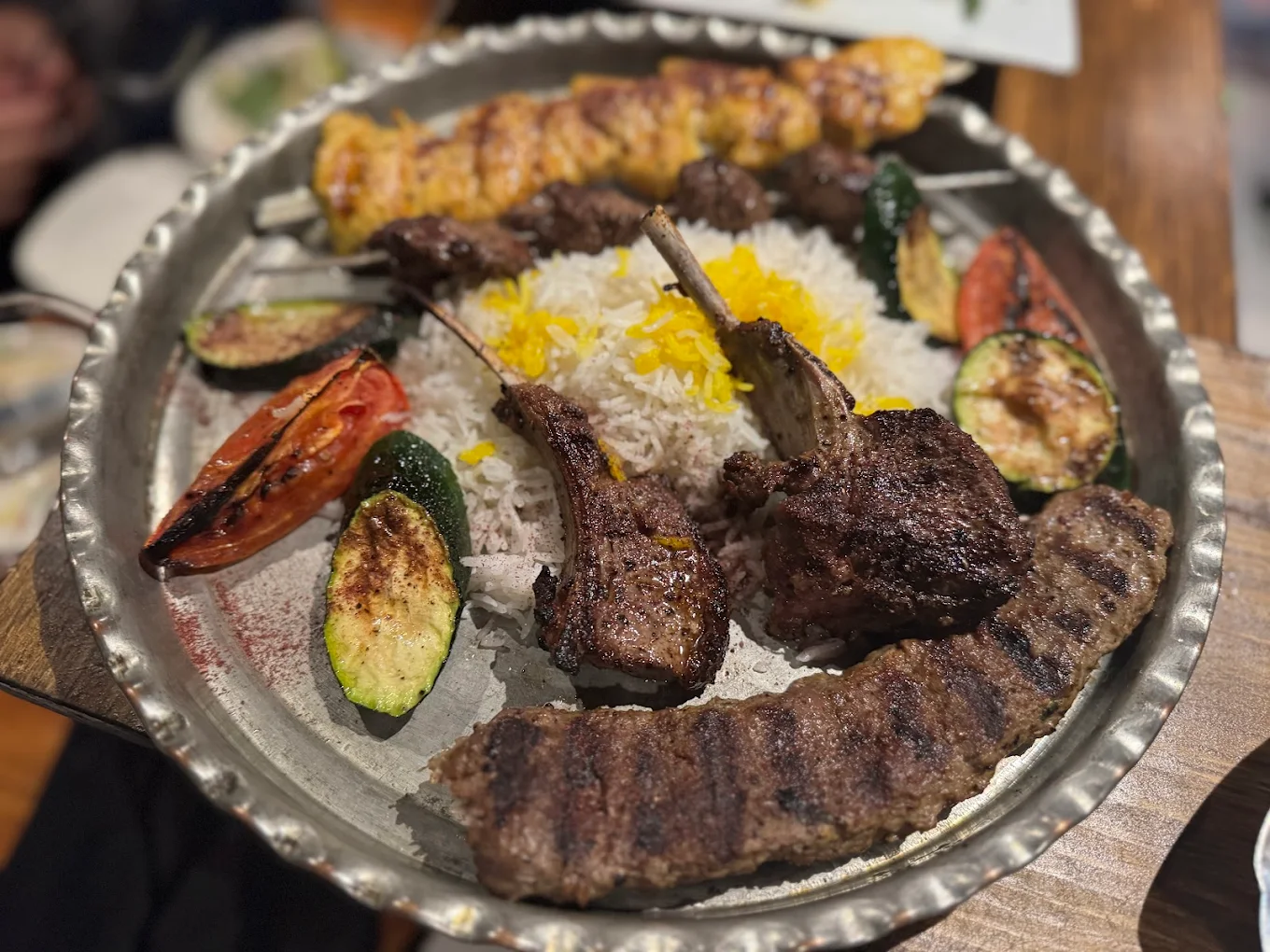 Pricing at the best Persian restaurant in Chicago keeps things approachable, with kabob plates like Koobideh ranging from $18 at Kabobi Grill to $22 at Maman Zari, delivering juicy beef or chicken alongside complimentary rice and grilled tomatoes. Appetizers such as hummus or Kashk Bademjan hover around $8 to $12 across spots like Noon O Kabab, where a full chicken kabob meal clocks in at $20, cheaper than beef at $22 but equally satisfying. Combination platters, ideal for two, run $35 to $45 at Pars Cove Restaurant, blending stews and skewers for better value than solo orders.