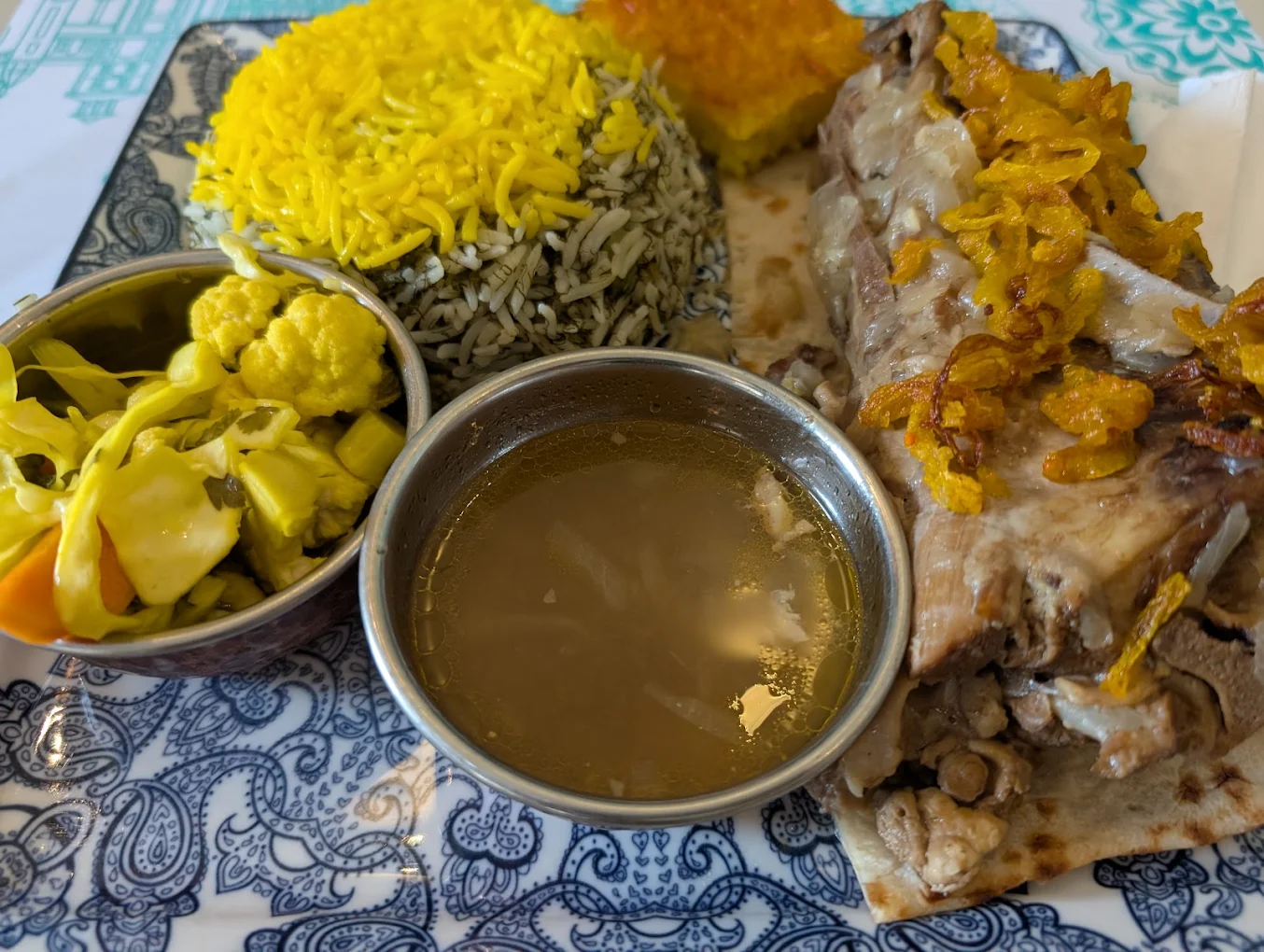 Abshar restaurant has invested a lot in the exterior and interior design of the restaurant and this investment has paid off. Decorations have made this place genuinely Persian. They serve a wide variety of authentic Persian food. A buffet is also available. A reviewer wrote “[the] menu is authentically Persian so you’d find all traditional dishes like Dizi, Tachin, Chelo Kebab, Iskander Kebab…” If you go there, don’t forget to order a teapot in the end; it’s the punchline of a perfect meal in an excellent Persian restaurant.