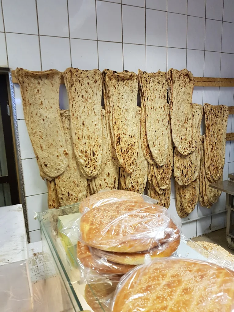 The taste is earthy, slightly nutty, soft at the center, and crisp around the edges. It’s the kind of bread that makes even a simple breakfast feel full—served with feta, herbs, and walnuts; wrapped around koobideh; or torn into pieces to dip into ghormeh sabzi or gheimeh.