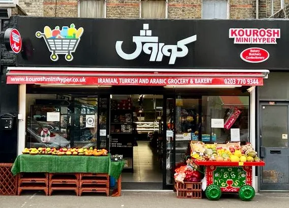 Kourosh hypermarket in London is a spacious Persian market where goods are neatly stacked on the shelves, and it’s definitely a priority for those who put cleanliness first. You can also buy meat and fresh produce (mainly fruits) at the Koroush market. What attracts Lavashak lovers in this supermarket is the Lavashak stand, where they can find fruit leaves in different flavors, brands, and sizes. You can also buy fresh bakery products and hot-from-oven Barbari bread at the bakery section.