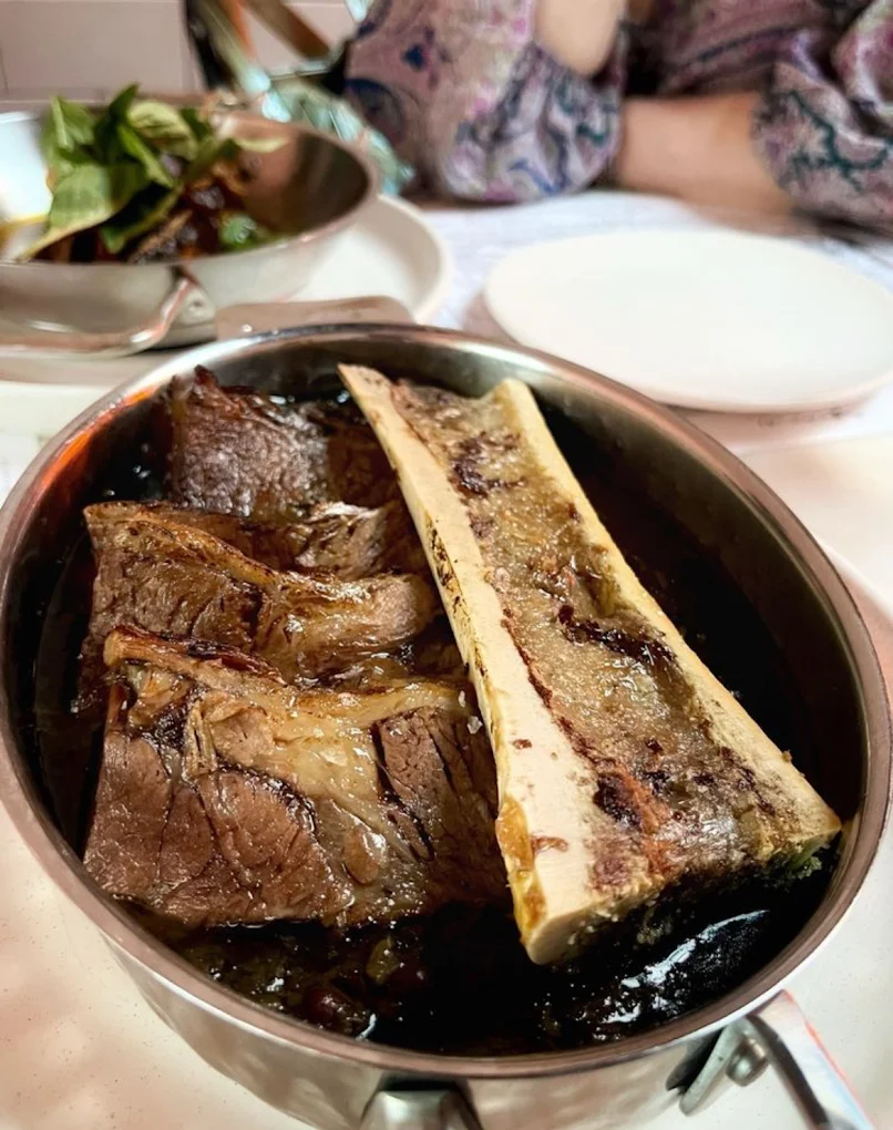 Eyval is a critically acclaimed modern Persian restaurant known for reimagining Iranian street food using wood-fired cooking. It is a stylish, hip spot with a cozy, intimate atmosphere, featuring dimmed lighting and white brick walls where scenes from Iranian films are sometimes projected. The restaurant is celebrated for its inventive small plates. A key feature is their freshly baked Barbari bread, topped with nigella and sesame seeds, which is highly praised and typically served alongside dishes like whipped feta spread or various borani.