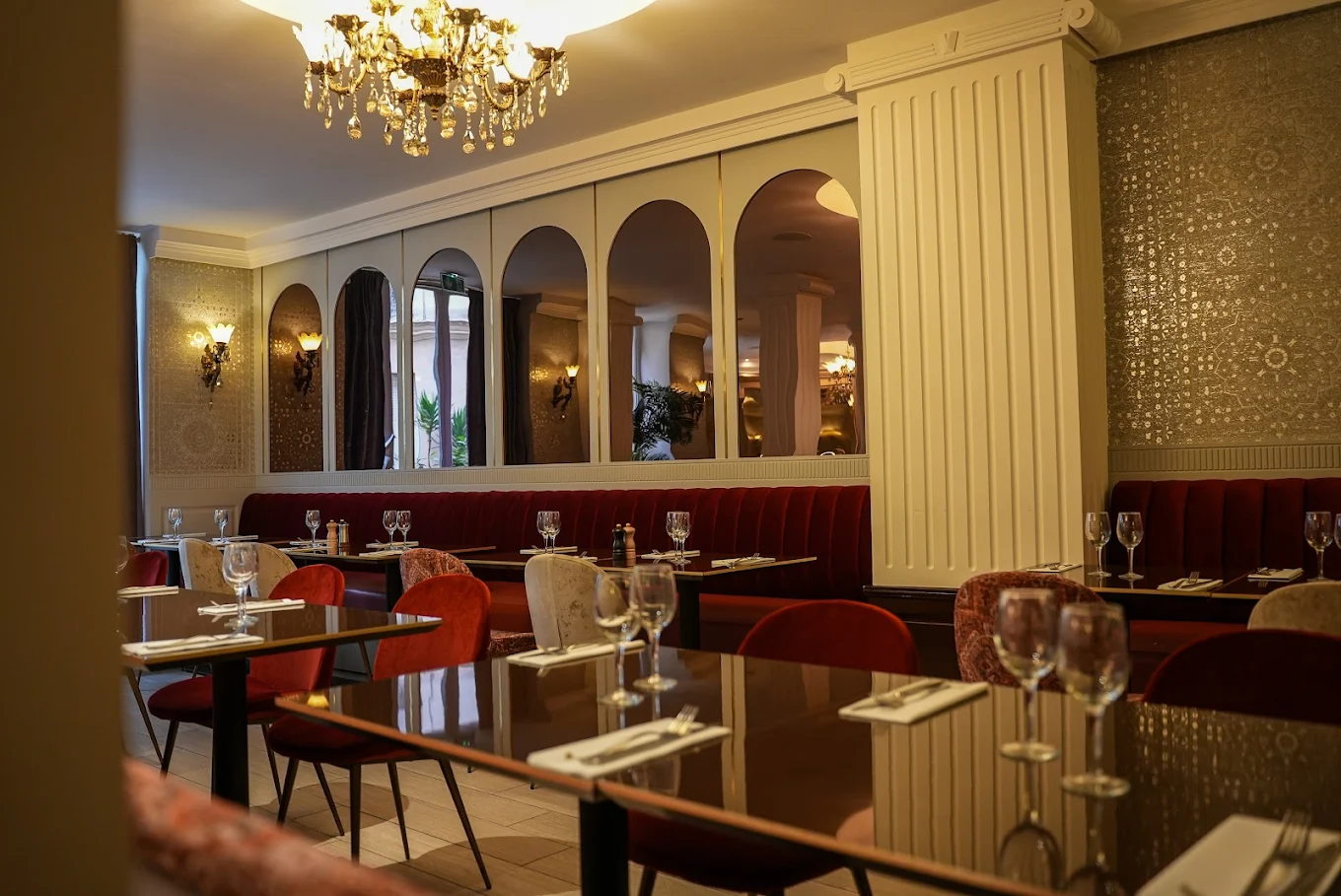Towards the center, Le Palais de la Perse on Rue Saint-Jacques is close to Cluny-La Sorbonne on RER B and has metered parking along with easy access for pedestrians. Additionally, Shabestan on the Champs-Élysées at George V on Line 1 offers valet parking amid luxury. Meanwhile, Mazeh on Vaugirard is accessible via bus 80.