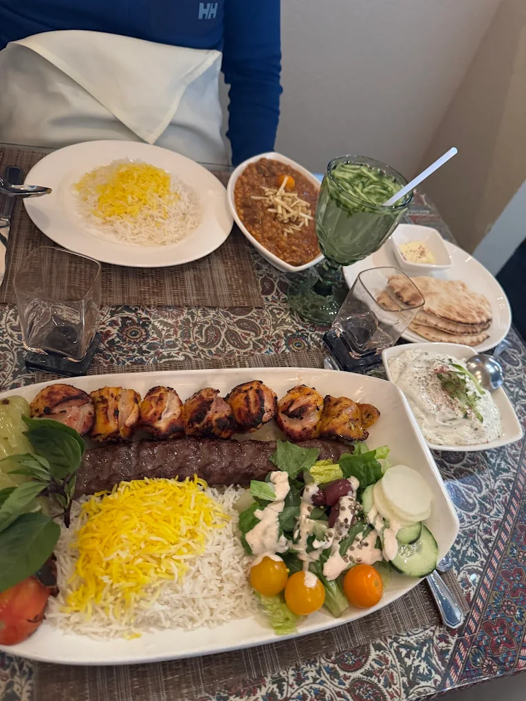 Daryoush restaurant (founded in 2025) is a good-sized Persian restaurant with an uncomplicated interior design, which is decorated with pictures of Pasargad. If you go there as a couple, you should order the Daryoush plate for two that includes one skewer of Joojeh, Koobideh, and Barg plus two servings of saffron rice. Daryoush restaurant also serves vegetarian and vegan dishes like Khoresht Bademjan, Fesenjan, and veggie kebabs. Reviews generally show satisfaction with the food and service, and this is great considering that the restaurant was founded just recently.