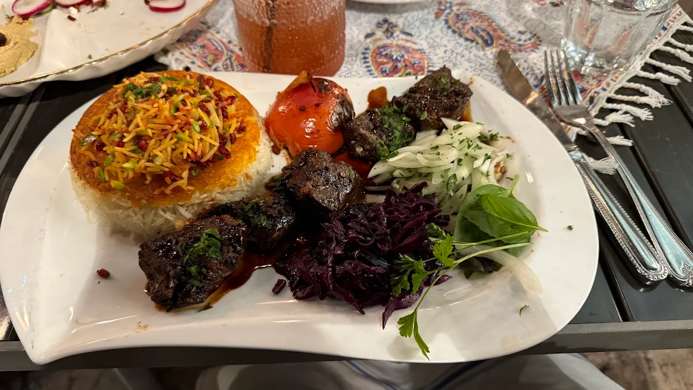Kabob Bazaar is the kind of neighborhood spot everyone recommends. Since 1993, they’ve been grilling juicy kabobs over charcoal, chicken, beef, lamb, and even seafood, piled next to fragrant saffron rice and warm, house-baked bread. You’ll also find comforting Persian stews and rotating daily specials that feel like a home-cooked meal. The vibe is casual, lively, and super welcoming; portions are generous, prices are fair, and the staff keeps things moving without rushing you.