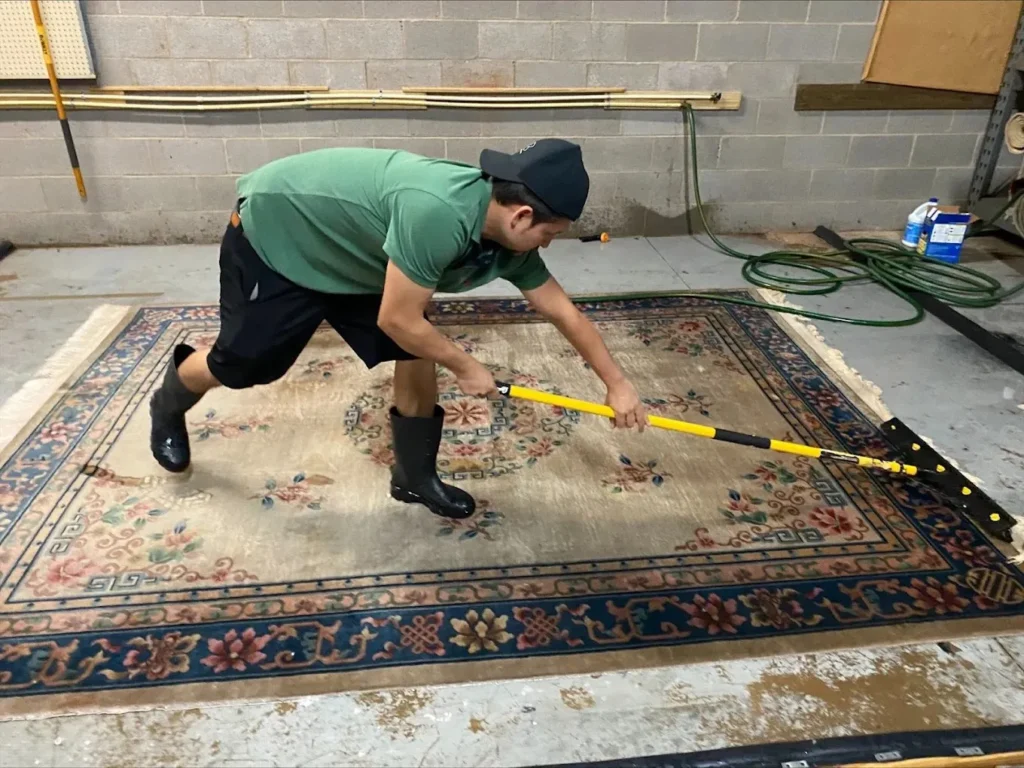 When you contact a rug cleaner, ask if they hand-wash Persian rugs or use carpet-cleaning machines. Hand-washing is usually gentler and safer for fine rugs. A good cleaner will inspect the material, weave, dyes, age, and condition of the rug before deciding how to clean it.
